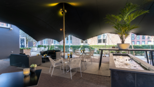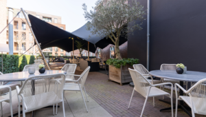 Our ‘exercise yard’ has a Mediterranean feel to it, with olive trees, an organic herb garden and the sound of running water in the background. It is a quiet oasis in the centre of bustling Roermond. A place to unwind while enjoying a relaxing glass of wine or a cup of coffee. Both the bar and the restaurant have direct access to the ‘exercise yard’. Dogs are not allowed in our courtyard.