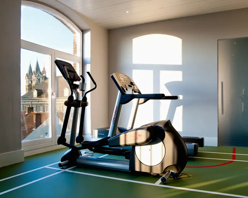 Our fitness room, also located on the third floor and accessible by elevator, combines historical charm with modern facilities. In the past, this space served as a gym for the prisoners. Now the fitness room is equipped with fitness and cardio equipment. WiFi is available for all our guests.