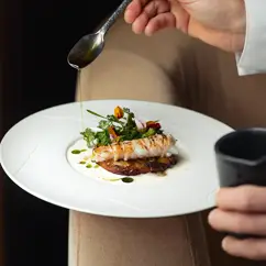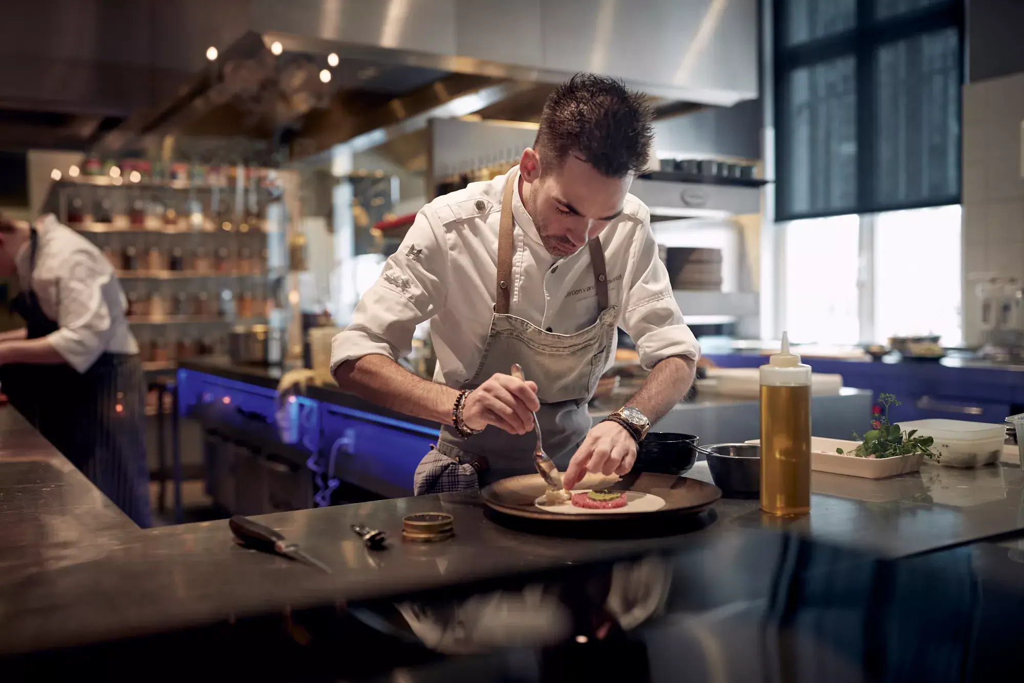 Chef Jeroen van Gansewinkel works with the finest seasonal ingredients, transforming them into refined dishes with subtle international influences. His cuisine is characterized by balance, creativity, and attention to detail. Maître-sommelier David Manders complements this culinary experience with his expertise and sense of hospitality. His refined wine selections and warm approach contribute to the personal atmosphere and complete the experience.